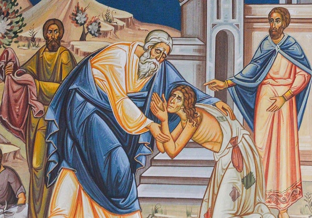 „Zis-a Domnul pilda aceasta: Un om avea doi fii. Și a zis cel mai tânăr dintre ei tatălui său: Tată, dă-mi partea ce mi se cuvine din avere. Atunci el le-a împărțit averea. Dar nu după multe zile, adunând toate, fiul cel mai tânăr s-a dus într-o țară depărtată și acolo și-a risipit averea trăind în desfrânări. Și, după ce a cheltuit totul, s-a făcut foamete mare în țara aceea și el a început să ducă lipsă. Și, ducându-se, s-a alipit el de unul din locuitorii acelei țări și acesta l-a trimis la țarinile sale să pască porcii. Și dorea să-și sature pântecele din roșcovele pe care le mâncau porcii, însă nimeni nu-i dădea. Dar, venindu-și în sine, a zis: Câți argați ai tatălui meu sunt îndestulați de pâine, iar eu pier aici de foame! Sculându-mă, mă voi duce la tatăl meu și-i voi spune: Tată, am greșit la cer și înaintea ta; nu mai sunt vrednic să mă numesc fiul tău. Fă-mă ca pe unul din argații tăi. Și, ridicându-se, a venit la tatăl său. Dar, încă departe fiind el, l-a văzut tatăl său și i s-a făcut milă și, alergând, a căzut pe grumazul lui și l-a sărutat. Atunci i-a zis fiul: Tată, am greșit la cer și înaintea ta și nu mai sunt vrednic să mă numesc fiul tău. Iar tatăl a zis către slugile sale: Aduceți degrabă haina lui cea dintâi și-l îmbrăcați și dați inel în mâna lui și încălțăminte în picioarele lui; apoi, aducând vițelul cel îngrășat, înjunghiați-l, ca, mâncând, să ne veselim, căci acest fiu al meu mort era și a înviat, pierdut era și s-a aflat. Și au început să se veselească. Iar fiul cel mare era la țarină. Când a venit și s-a apropiat de casă, a auzit cântece și jocuri. Atunci, chemând la sine pe una dintre slugi, a întrebat ce înseamnă acestea. Iar ea i-a spus: Fratele tău a venit și tatăl tău a înjunghiat vițelul cel îngrășat, pentru că l-a primit sănătos. Și el s-a mâniat și nu voia să intre; dar tatăl lui, ieșind, îl ruga. Însă el, răspunzând, a zis tatălui său: Iată, de atâția ani îți slujesc și niciodată n-am călcat porunca ta. Și mie niciodată nu mi-ai dat un ied, ca să mă veselesc cu prietenii mei. Dar când a venit acest fiu al tău, care ți-a mâncat averea cu desfrânatele, ai înjunghiat pentru el vițelul cel îngrășat. Tatăl însă i-a zis: Fiule, tu totdeauna ești cu mine și toate ale mele ale tale sunt. Trebuia însă să ne veselim și să ne bucurăm, căci fratele tău acesta mort era și a înviat, pierdut era și s-a aflat.” (Luca 15, 11-32)